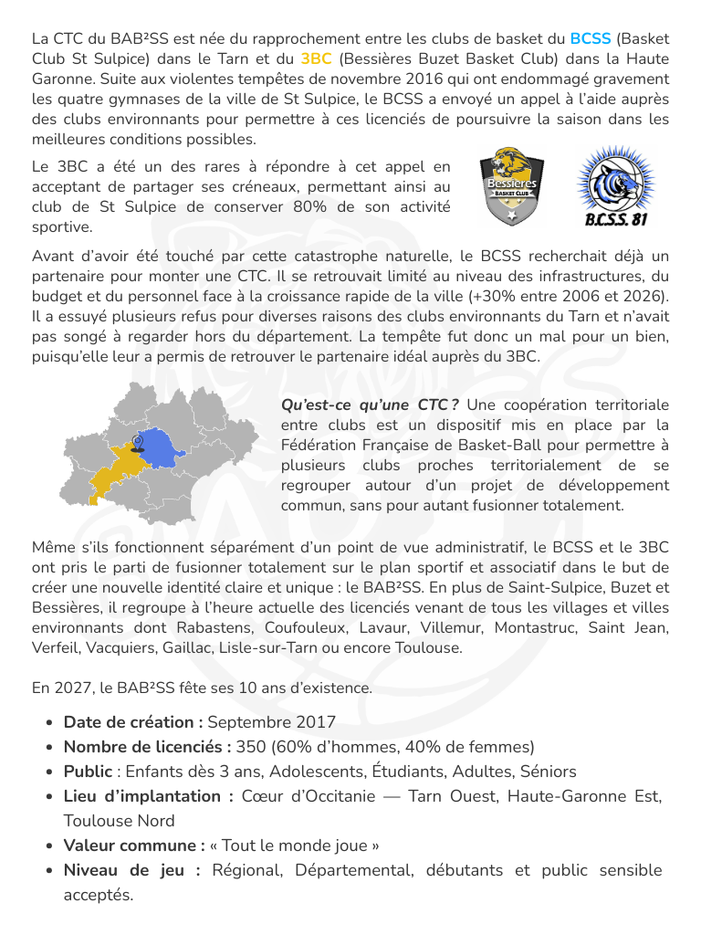 Histoire du BC St Sulpice